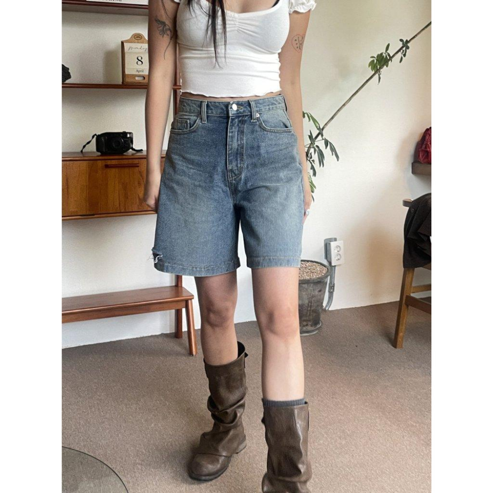 ▶ 產品:純棉五分破邊牛仔褲