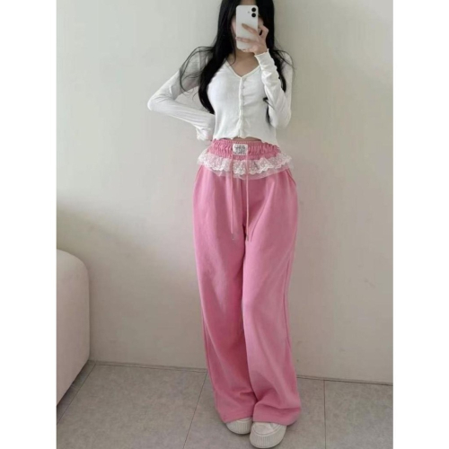 ▶ 產品:純棉雙層蕾絲運動長褲 (圖片上衣可於本店搜尋→ V領木耳邊小外套)