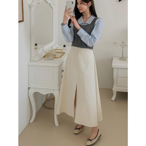 ▶ 尺寸: S - 半腰圍 32cm, 半臀圍 53cm, 裙長 86cm M - 半腰圍 35cm, 半臀圍 56cm, 裙長 86cm