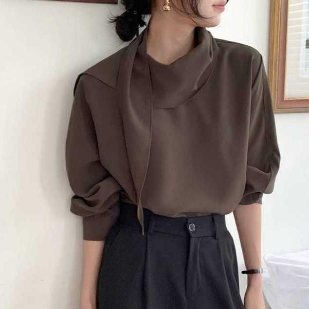 ▶ 預購為3~7個工作日出貨 ✨ 隨性優雅:自帶絲巾設計,展現高級感穿搭 ✨ 多色選擇:奶白 / 摩卡棕 / 經典黑,通勤休閒都百搭 ✨ 修飾剪裁:微落肩搭配順身版型,修飾肩線與身形 ✨ 質感面料:輕盈垂墜,舒適親膚不易皺