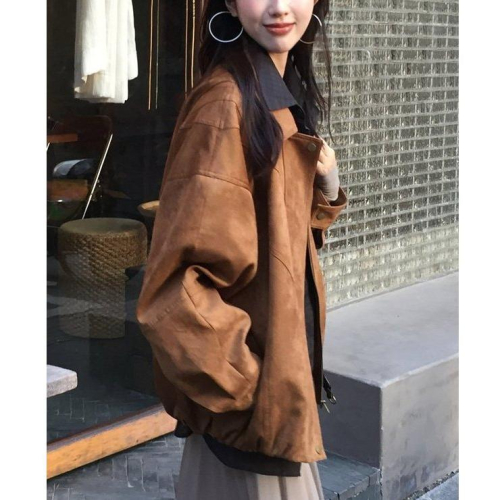 ▶ 產品:後線條寬鬆麂皮夾克