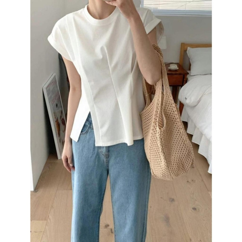 ▶ 尺寸:M, L M - 肩寬 43cm, 胸寬 43cm, 衣長 58cm, 袖長 4cm, 腋寬 21cm, 底部寬 44cm L - 肩寬 44cm, 胸寬 44cm, 衣長 60cm, 袖長 4cm, 腋寬 23cm, 底部寬 46cm