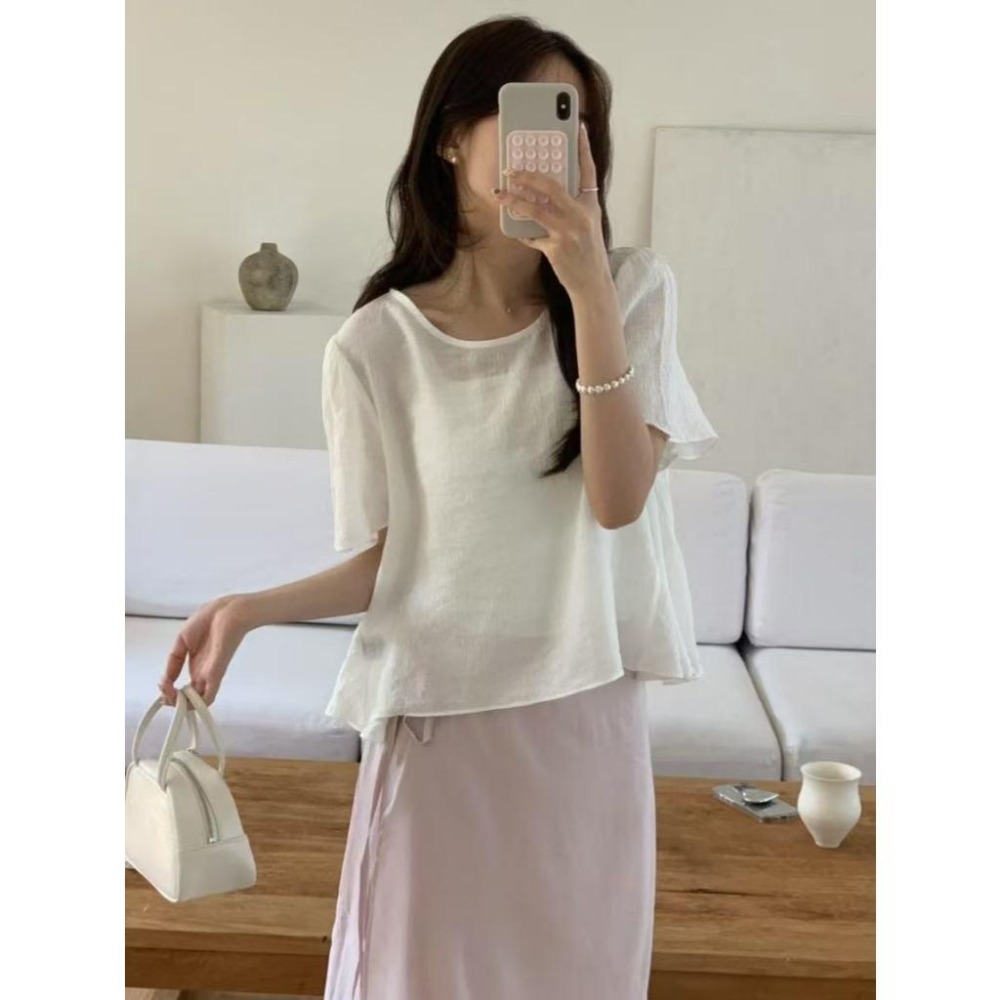 ▶ 產品:透光泡泡袖短袖襯衫