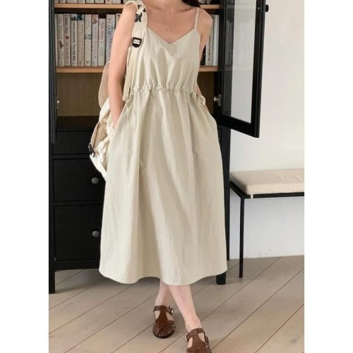 ▶ 產品:細肩V領修身長洋裝 (肩帶及腰圍皆可調整, 適合各階段孕媽咪)