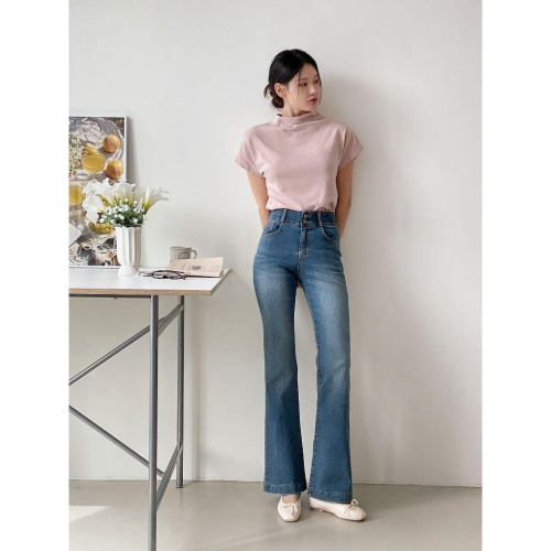 【極顯瘦微喇褲】VENUSY|正韓🇰🇷 - 韓國東大門空運直送台灣|雙扣高腰彈性喇叭褲牛仔褲