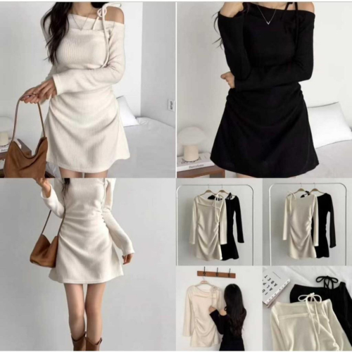 【露肩修身】VENUSY|正韓🇰🇷 - 韓國東大門空運直送台灣|綁帶針織洋裝