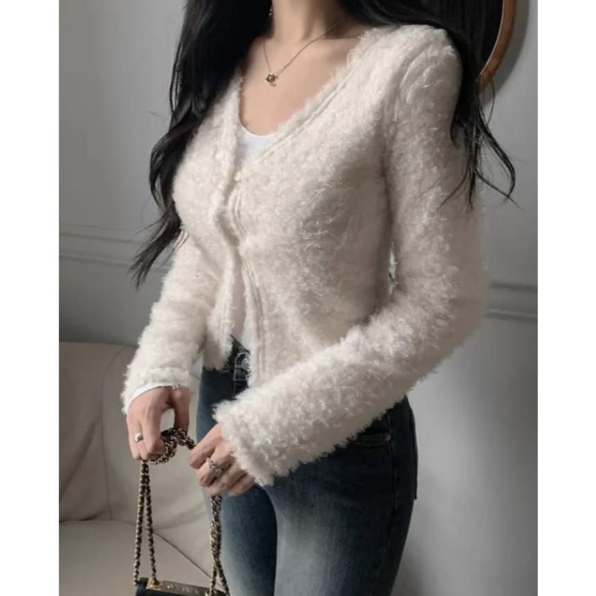 【春日戀愛】VENUSY|正韓🇰🇷 - 韓國東大門空運直送台灣|毛絨感短版針織外套