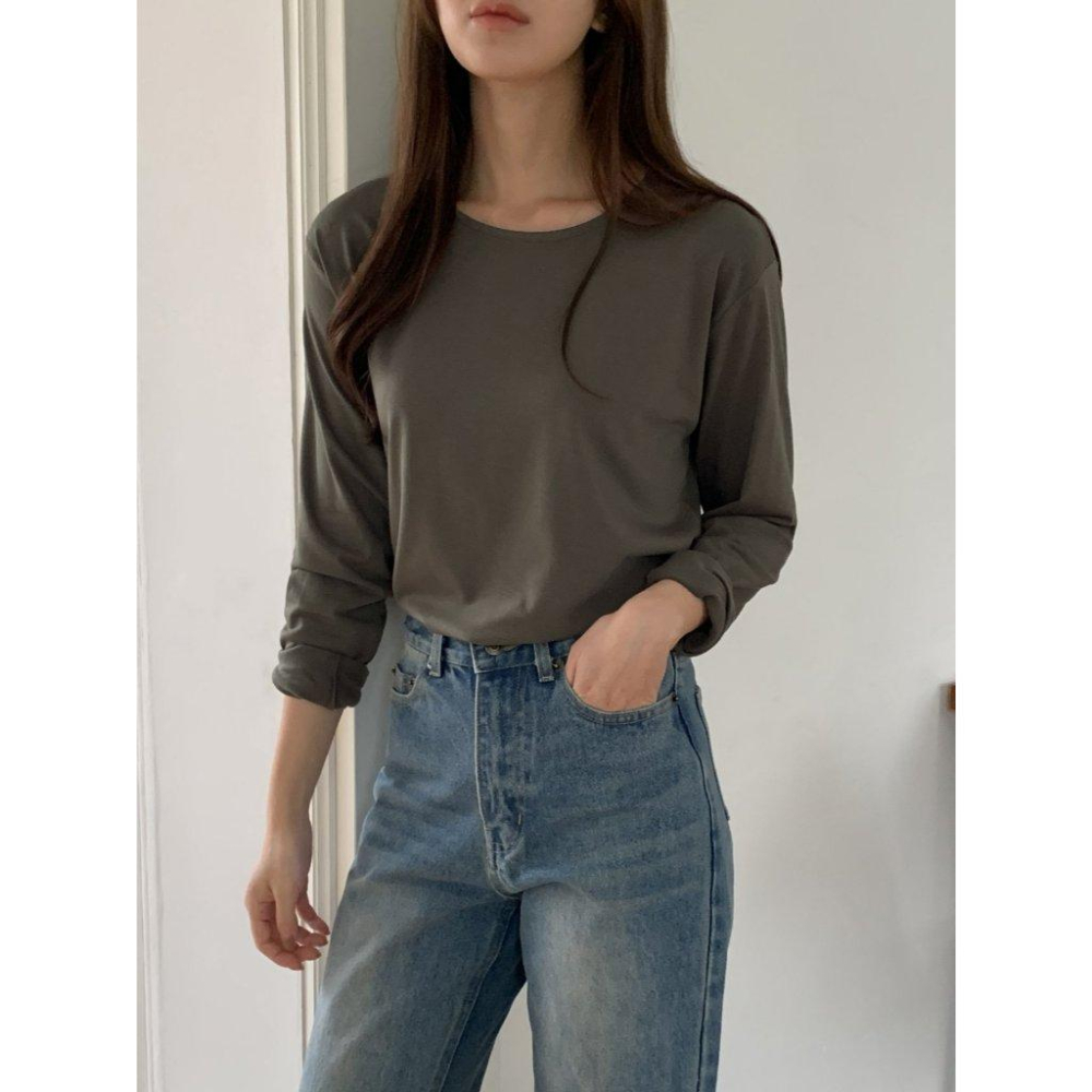 【內刷毛親膚保暖】VENUSY|正韓🇰🇷 - 韓國東大門空運直送台灣|圓領基本款長袖T恤 內搭 發熱衣