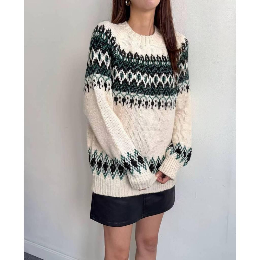 【北歐復古提花】VENUSY|正韓🇰🇷 - 韓國東大門空運直送台灣|花卉寬鬆圓領針織衫