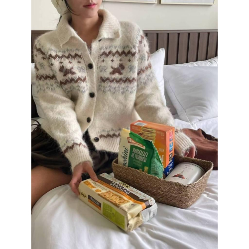 【溫柔北歐雪景款】VENUSY|正韓🇰🇷 - 韓國東大門空運直送台灣|羊毛翻領針織開衫外套