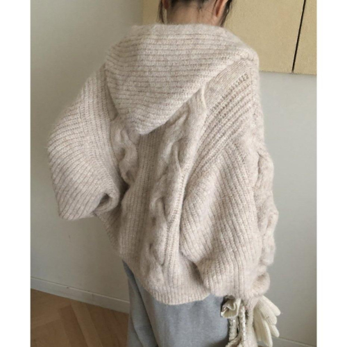【寬鬆慵懶氛圍感】VENUSY|正韓🇰🇷 - 韓國東大門空運直送台灣|粗花連帽羊毛針織外套