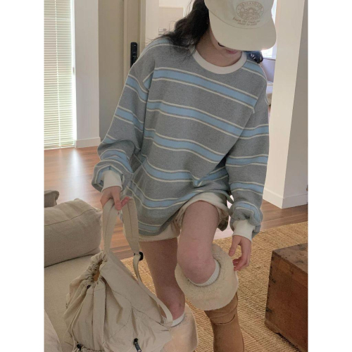 【內刷毛保暖】VENUSY|正韓🇰🇷 - 韓國東大門空運直送台灣|雙面絨條紋長袖T恤 衛衣