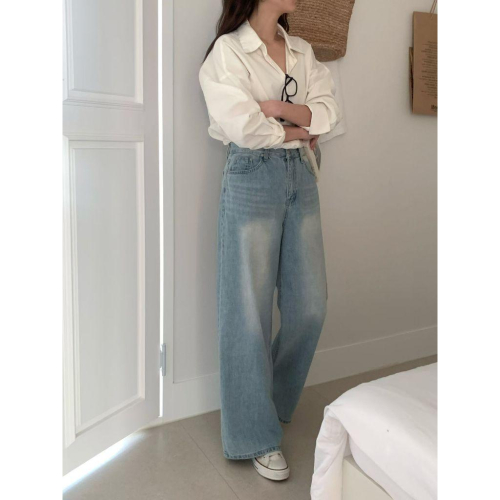 【韓妞必備氛圍感】VENUSY|正韓🇰🇷 - 韓國東大門空運直送台灣|純棉高腰闊腿牛仔褲