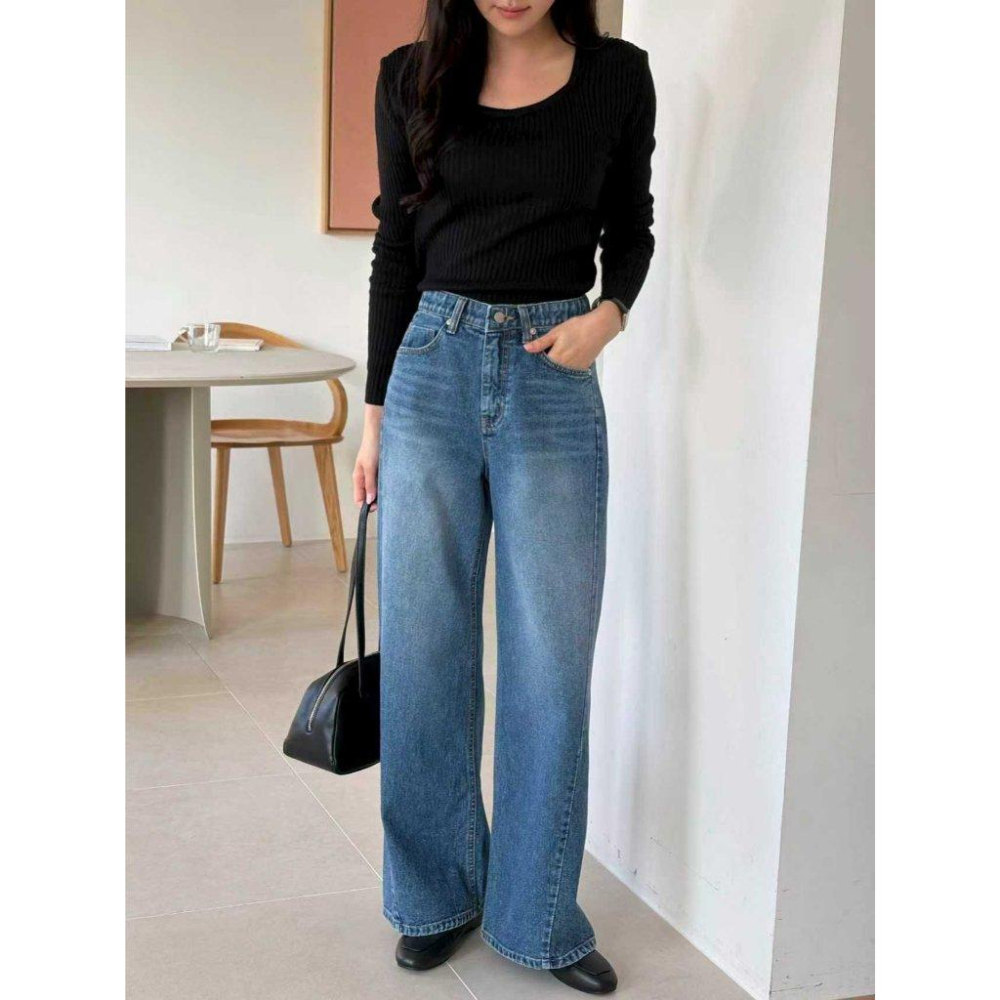 【2026春季新品】VENUSY|正韓🇰🇷 - 韓國東大門空運直送台灣|側隧道闊腿牛仔褲