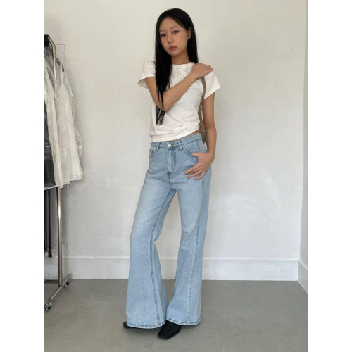 【修身顯瘦不貼腿】VENUSY|正韓🇰🇷 - 韓國東大門空運直送台灣|隧道剪接喇叭牛仔褲 高個子