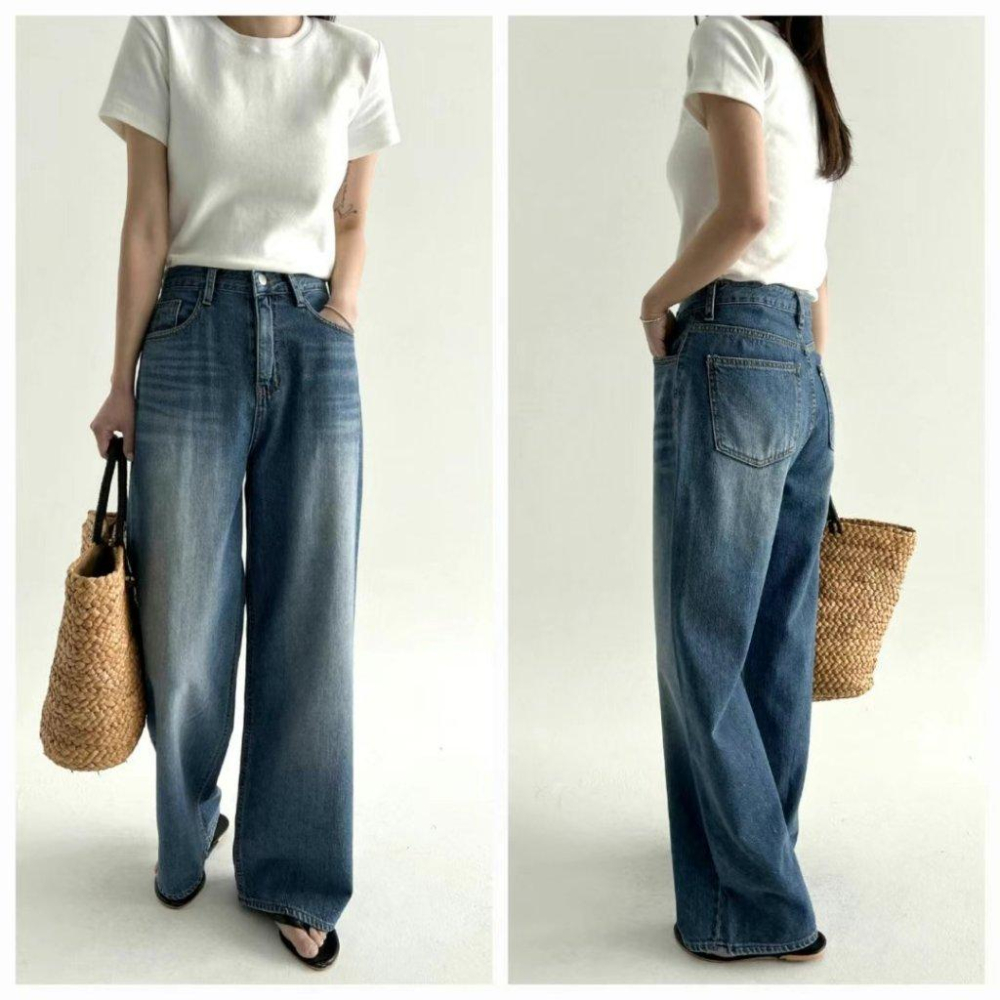 【100%純棉 薄軟款】VENUSY|正韓🇰🇷 - DEEP ♡ 韓國熱門設計師|飄逸寬鬆直筒牛仔褲