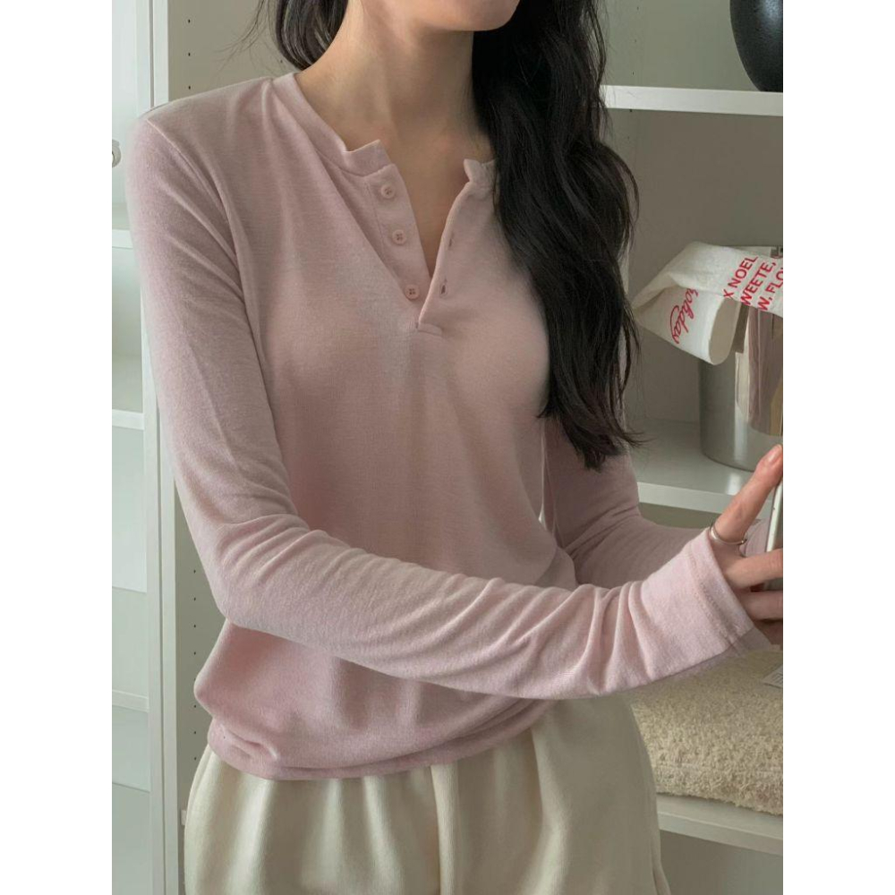 【回購率款】VENUSY|正韓🇰🇷 - 韓國東大門空運直送台灣|極簡鈕扣長袖T恤