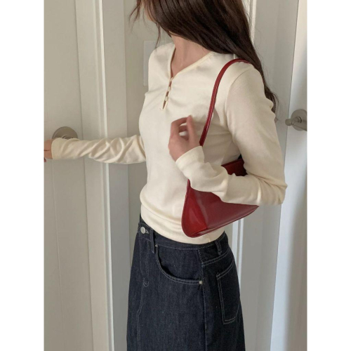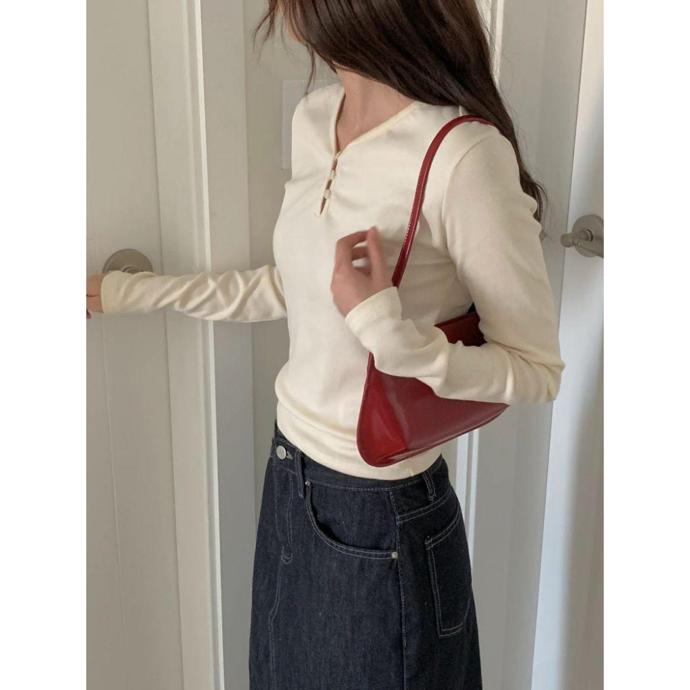 【日常高級感】VENUSY|正韓🇰🇷 - 韓國東大門空運直送台灣|V領鈕扣長袖T恤
