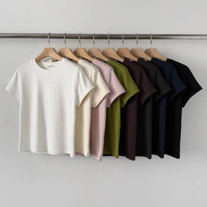 【親膚不透・微合身版型】VENUSY|正韓 - 質感水洗彈力短袖T恤.10色入・57%棉+莫代爾・抗變形