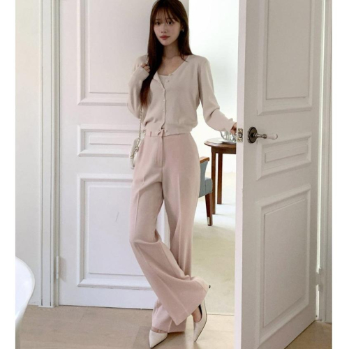 【乾枯玫瑰・修身微喇】VENUSY|正韓 - 質感平腹彈力微喇叭褲.黑/乾枯玫瑰粉/灰米.360度超舒適包覆