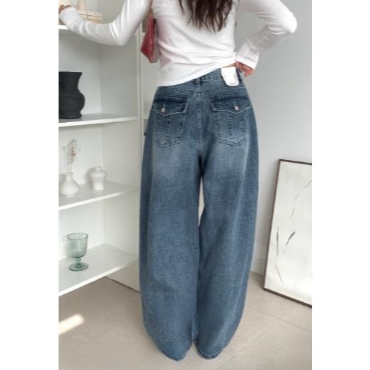【韓網爆紅】VENUSY|正韓 - 純棉灰藍水洗闊腿牛仔褲.S-L・Made in Korea