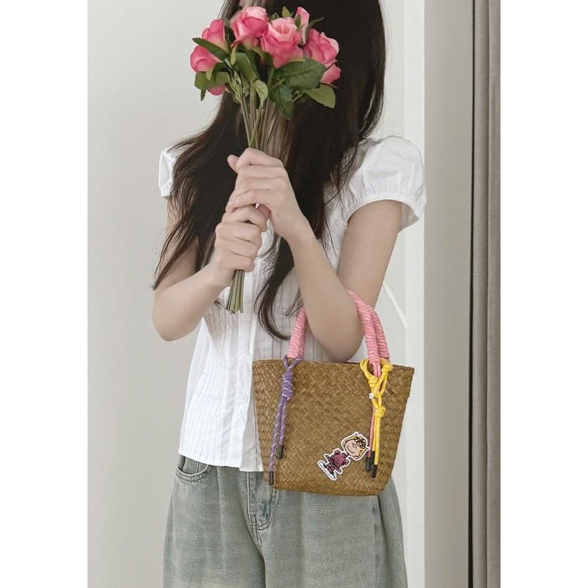 【天然藤編・正版Snoopy】VENUSY|正韓 - 藤編PEANUTS手提包.藍/綠/紫/粉/黃