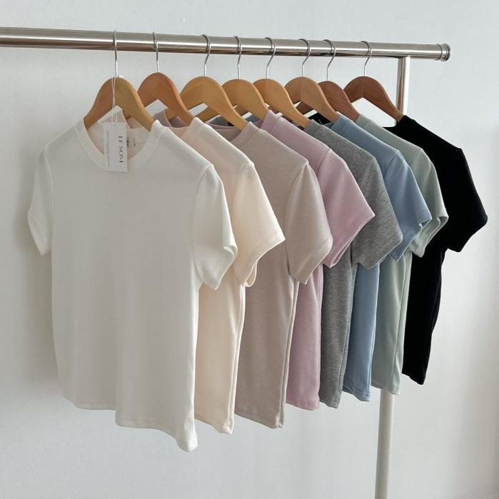 【絲滑親膚・領口防變形】VENUSY|正韓 - 柔軟天絲感短袖T恤.八色入・Made in Korea