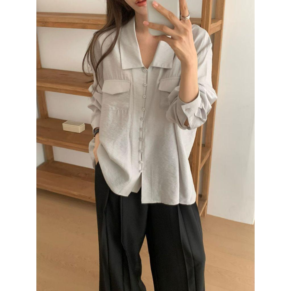 【高級霧光】VENUSY|正韓 - 質感雙口袋長袖襯衫.黑色/白色/灰色・Made in Korea