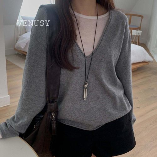 【55%羊毛・極致顯瘦深V】VENUSY|正韓 - 復古慵懶風針織上衣.高感羊毛混紡.5色入.Made in Korea
