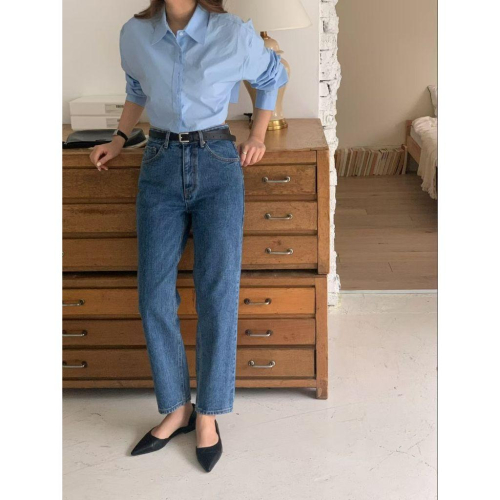 【100%純棉】VENUSY|正韓 - 經典藍九分修身牛仔褲.S-L.輕盈透氣丹寧.Made in Korea