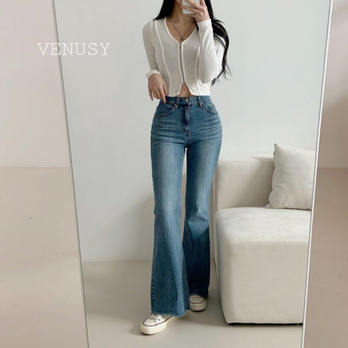 【名模腿神褲】VENUSY|正韓 - 隧道彈力修身喇叭牛仔褲.隱形鬆緊腰.視覺延伸 +10cm