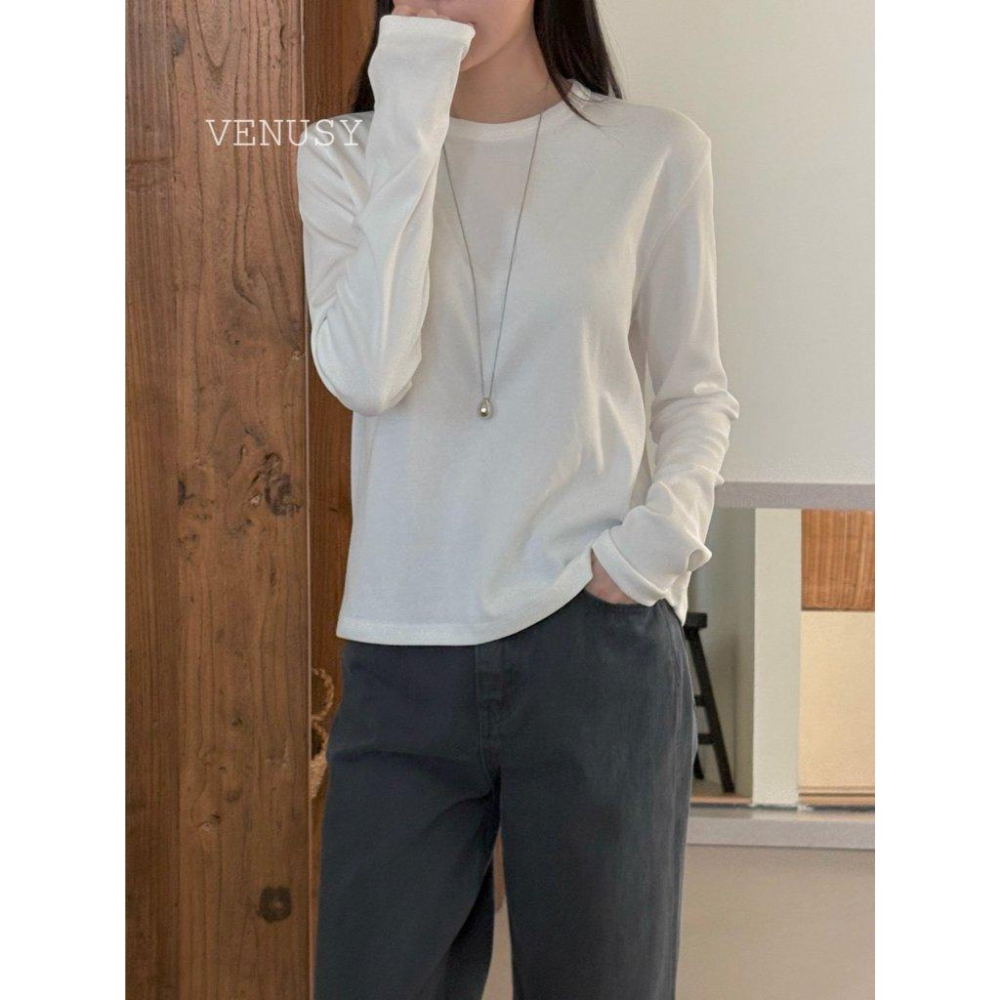 【奶油棉觸感・修身美型】VENUSY|正韓 - 質感長袖T恤.6色入.柔軟棉質混紡.S-L.Made in Korea