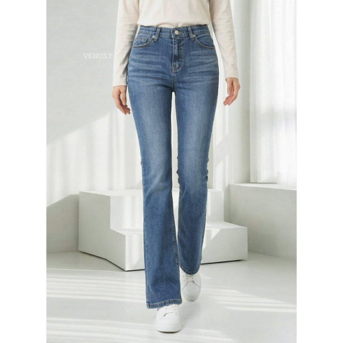 【360度美腿・零束縛】VENUSY|正韓 - 經典中藍喇叭牛仔褲.高含棉親膚面料.修身顯瘦.彈性極佳.喇叭褲