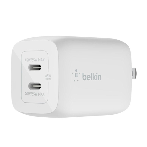 使用我們功能強大且超緊湊的 65W 雙 USB-C 家用充電器同時為您的 MacBook†† 和 iPhone 充電。