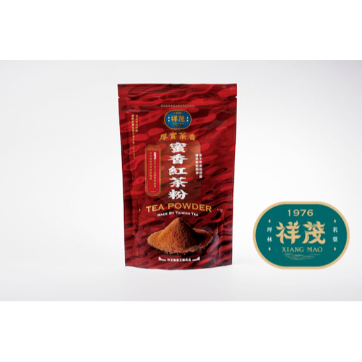祥茂茶粉採醫藥級研磨機,製作過程中每一步驟對於品質有著絕對的堅持。從新鮮茶菁蒸菁冷卻初揉中揉精揉乾燥篩枝分篩研磨成品,茶粉除了能沖泡外,更能成為蜜香紅茶口味的麻糬、月餅、麵包等多樣食品製作的靈魂原料。
