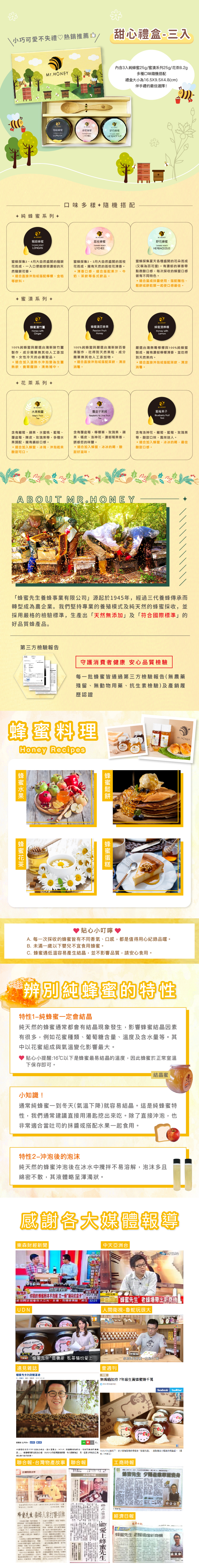 ※ 蜂蜜結晶屬自然現象,如遇結晶,建議直接使用湯匙取用或作為抹醬使用。