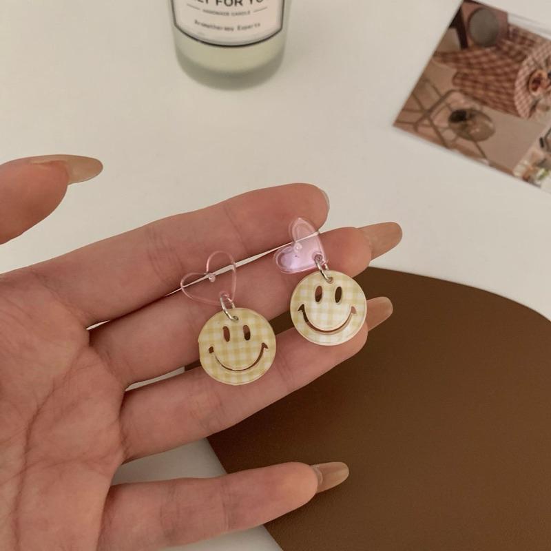 心飾Acc🇰🇷售完不補「格子愛心微笑耳夾/耳釘」甜美 夾式耳環 正韓 配件 百搭 空運 台灣出貨 nyunyu 無耳洞