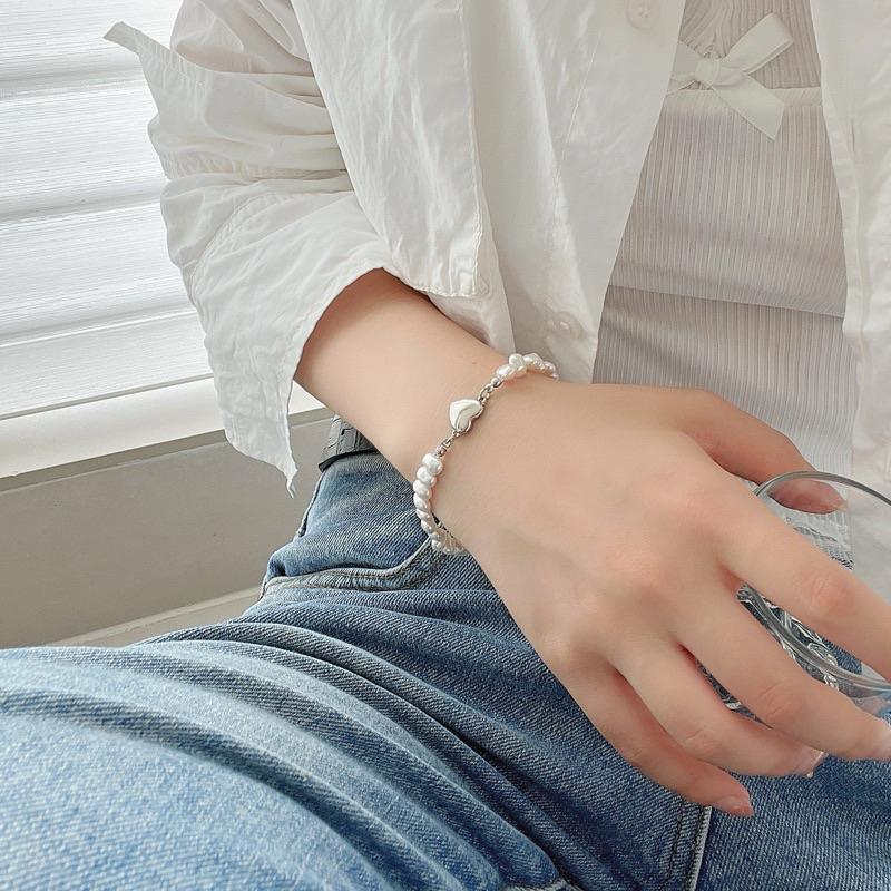 心飾Acc🇰🇷快速出貨「愛心造型巴洛克珍珠質感手鍊 / 珍珠手鍊 愛心手鍊 韓系手鍊 韓國空運