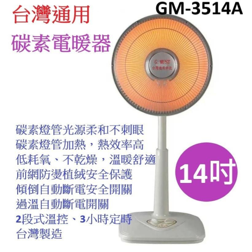 台灣通用 台灣製造 14 吋碳素電暖器GM-3514A
