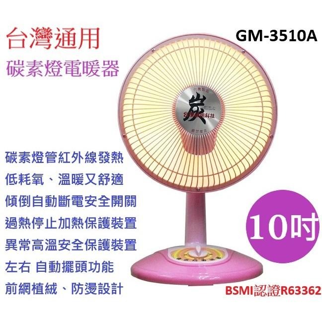 台灣通用 10吋碳素燈電暖器 植絨防燙GM-3510A