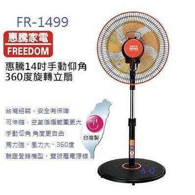 家賀小家電 惠騰 14吋 手動仰角360度 循環扇 FR-1499