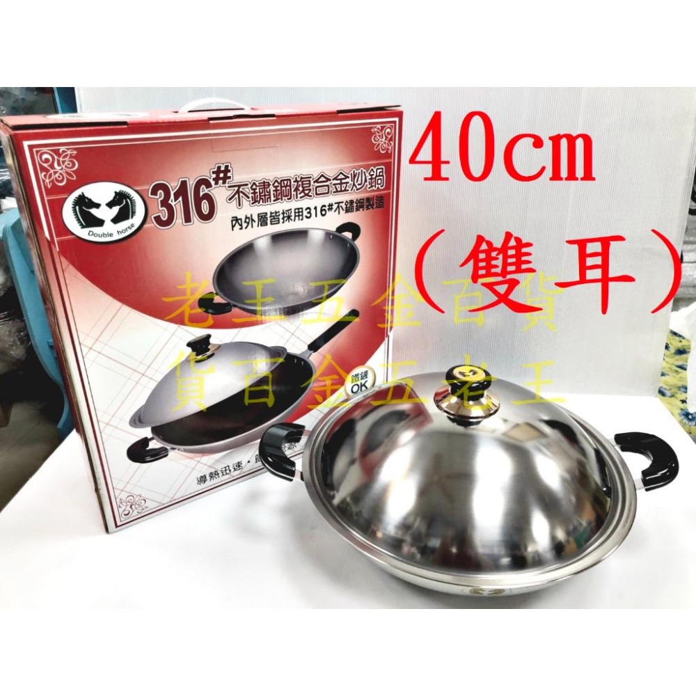 雙馬牌 37cm 40cm 42cm 全316不銹鋼 複合金 炒鍋 不沾鍋 雙耳 附蓋 全鋼 全鐵 台灣製