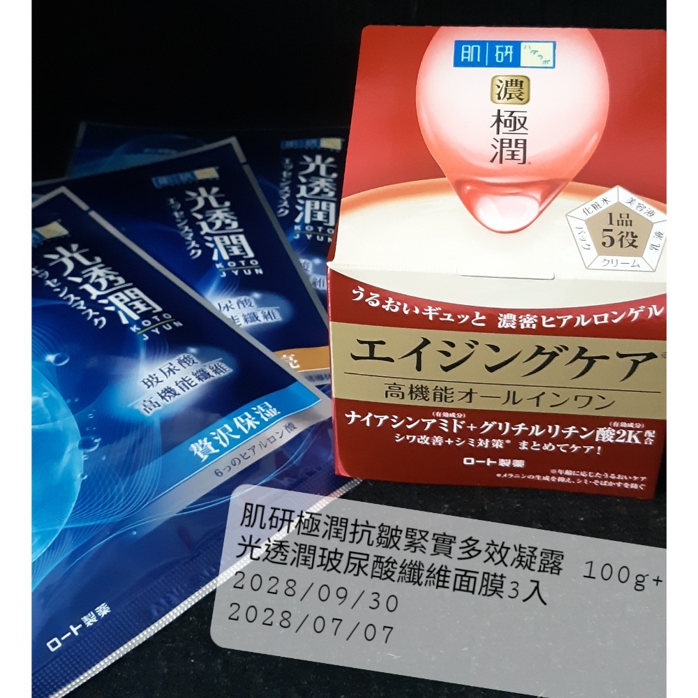 粟米小舖-樂敦 肌研極潤抗皺緊實多效凝露 100g+光透潤玻尿酸纖維面膜3入 2028/09/30