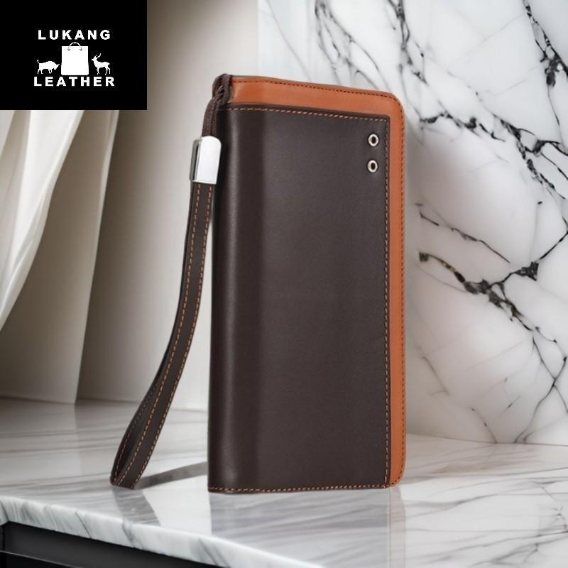 【鹿港現貨】真皮手拿包 牛皮拉鍊長夾 商務復古風 手抓包 皮夾 錢包