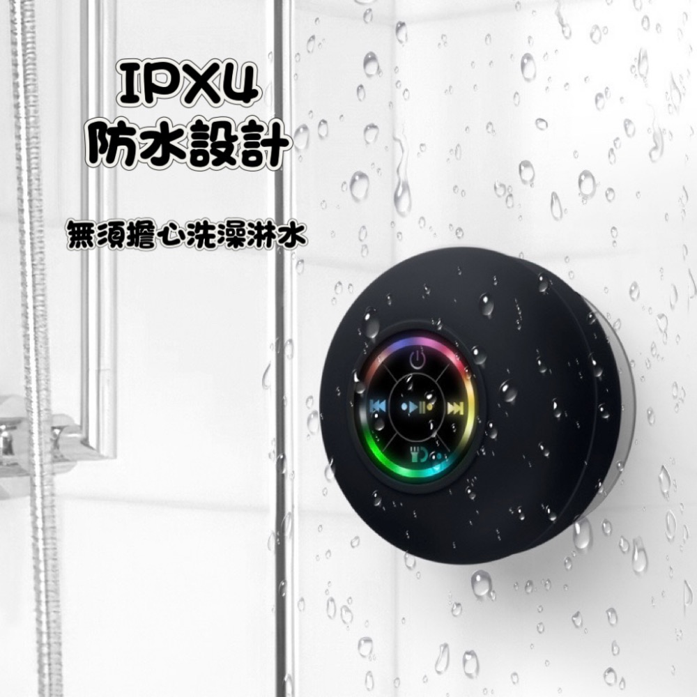 台灣現貨 『蟹老闆嚴選』藍芽音響 浴室音響 吸盤音響 附大吸盤 防水 LED 燈光 露營 攜帶方便 小而精緻 迷你立體聲
