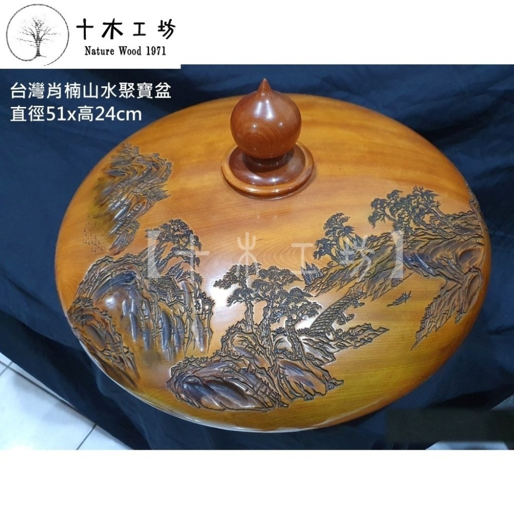 【十木工坊】頂級台灣肖楠山水-手工浮雕聚寶盆 -約直徑51cm-取材至120Cm直徑神木原木.偏心才