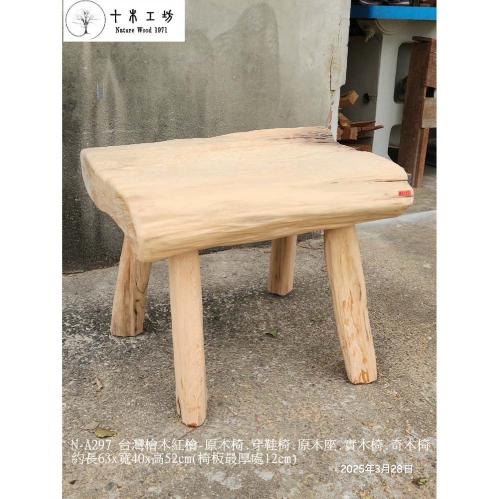 【十木工坊】N-A297 台灣檜木紅檜-原木椅.穿鞋椅.原木座.實木椅.奇木椅-約長63×寬40×高52cm(椅板最厚處12cm)