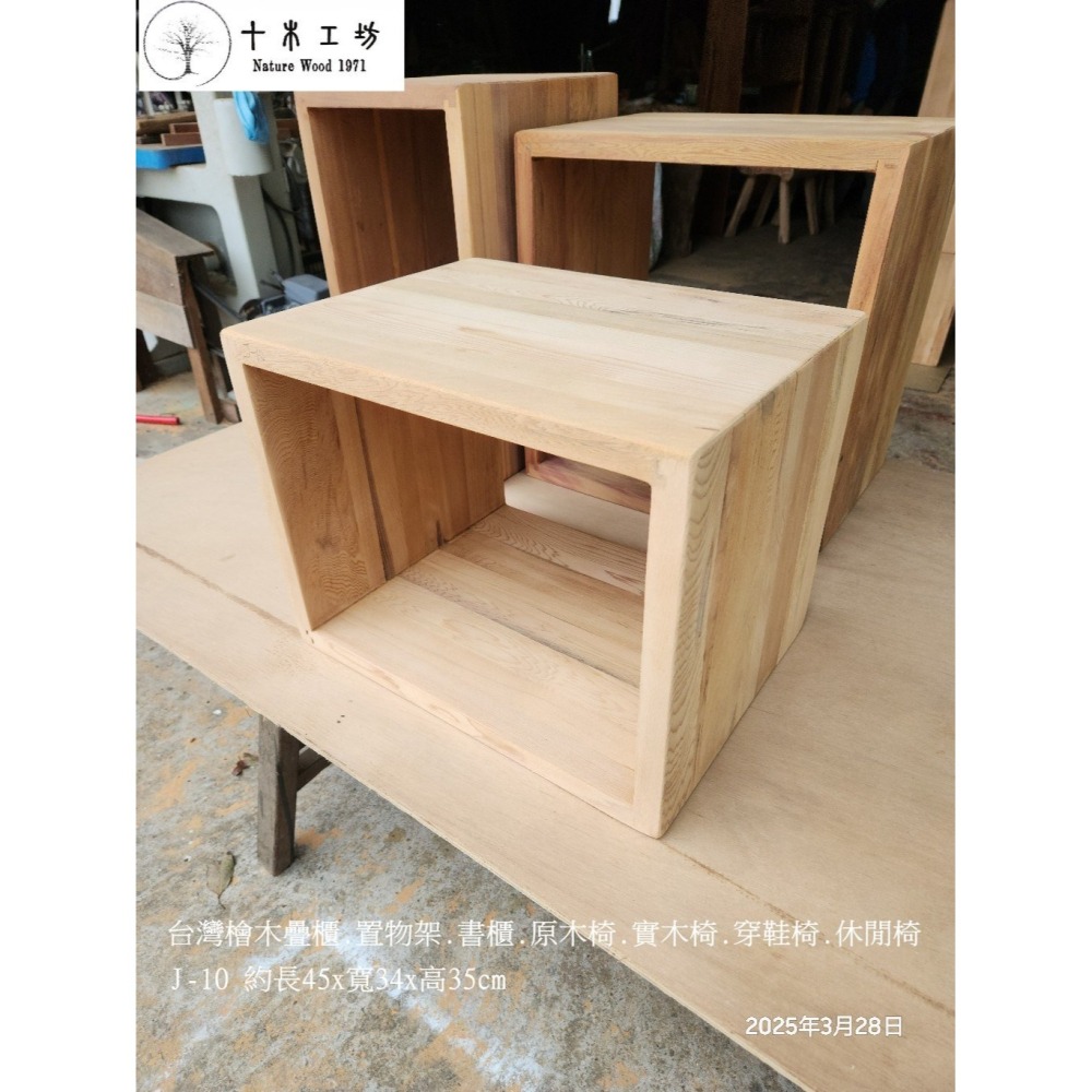【十木工坊】J-10台灣檜木疊櫃.置物架.書櫃.原木椅.實木椅.穿鞋椅.休閒椅(多規格)
