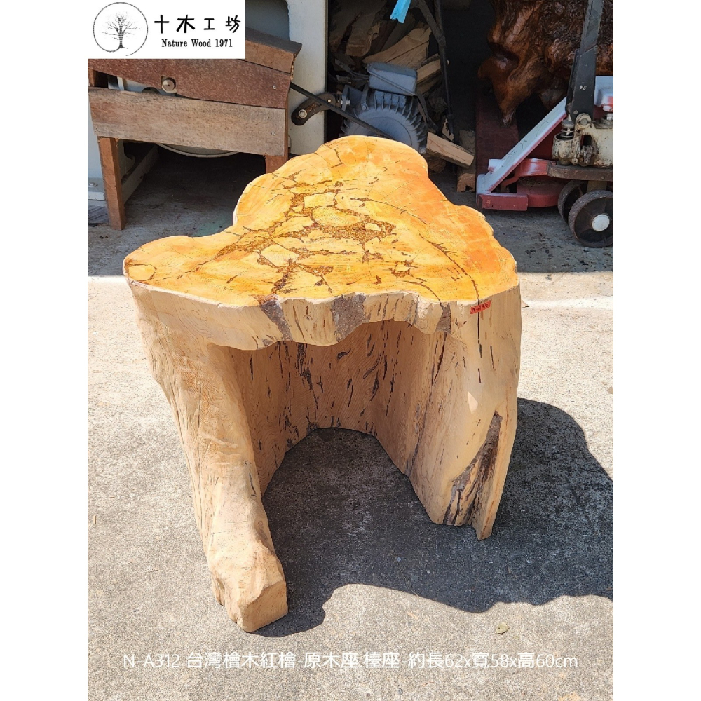 【十木工坊】N-A312 台灣檜木紅檜-原木座.檯座.邊几.禪風.原木風.家具.工廠直營-約長62×寬58×高60cm(無垢未上漆)
