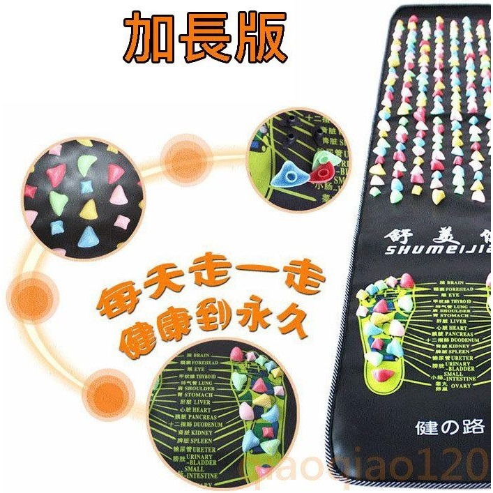 仿鵝卵石健康步道 塑膠石塊可移動,由於設計時考慮到按摩效果,所以塑膠石頭有些圓/尖,也許有些開始使用時不太習慣,建義初使用者可舖薄毯跟穿襪子行走。